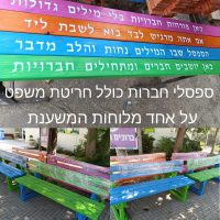 שלטים חרוטים בעץ, אשפתונים, ספסלים, שולחנות קק”ל